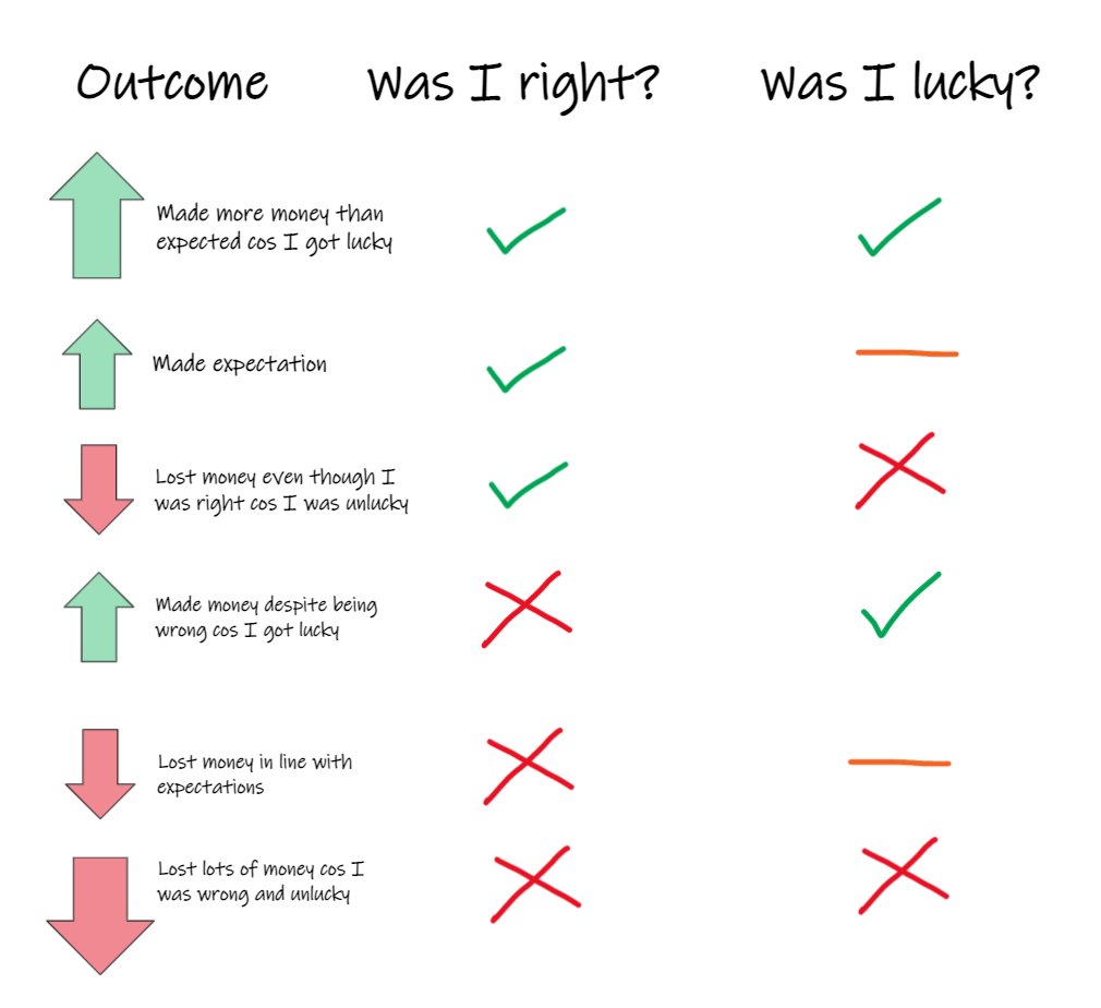 - am I lucky? (did random unforecastable events help or hinder my position)