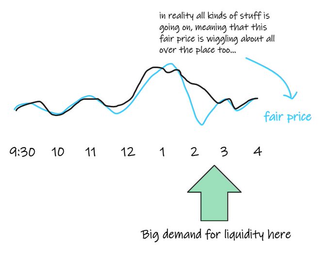 - the presence of the new liquidity demand makes price go up more if the buyer wasn't there when he's buying