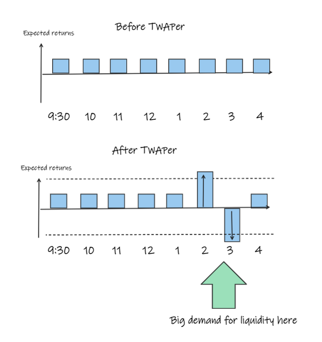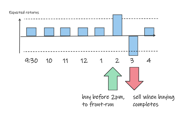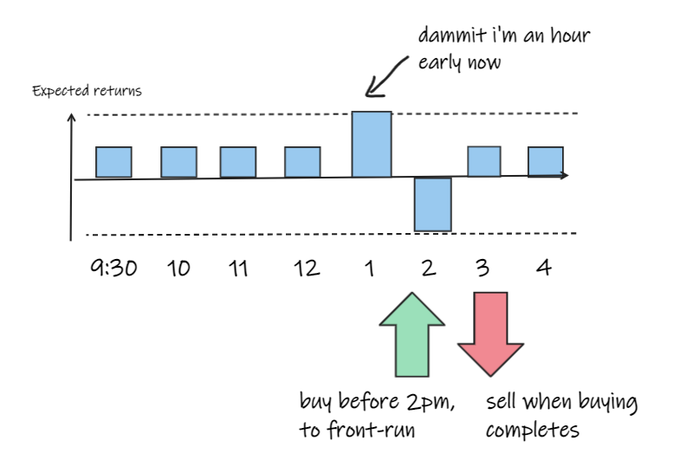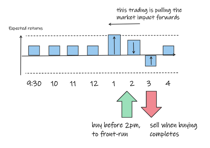 they're going to buy just before 2pm, ahead of our TWAPper, and they're going to sell to him towards the end of the hour, as he completes.