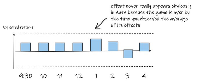 over time, if we're looking at expected return by hour of the day over some recent period, it's going to slowly start looking like this.