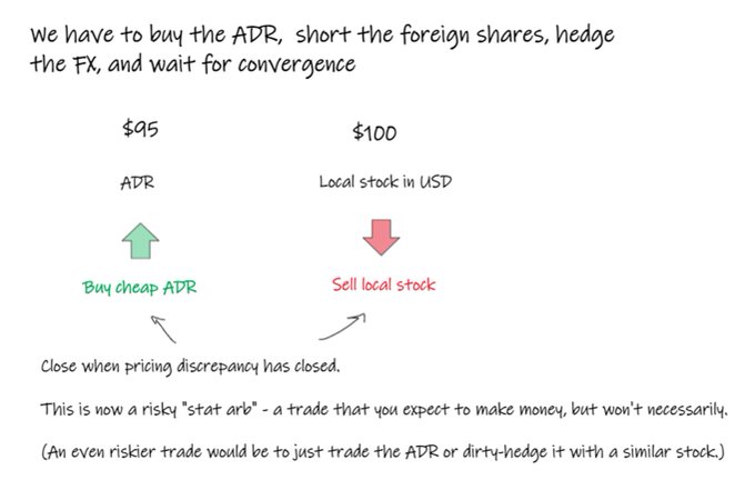 instead we have to do a riskier trade where we long the adr, short the foreign shares, hedge the FX if we have to.