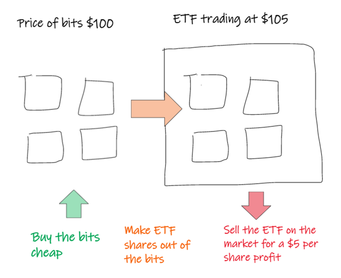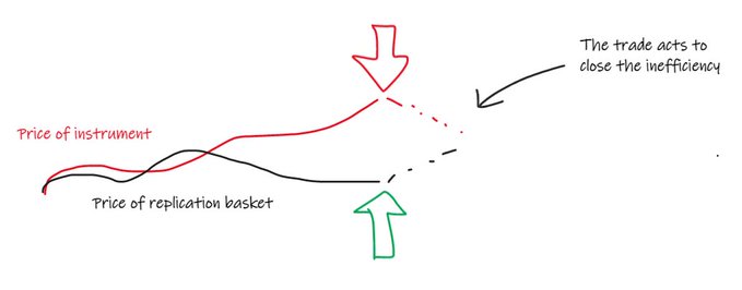 if they don’t, someone will trade the thing and the replicating basket of things for profit.