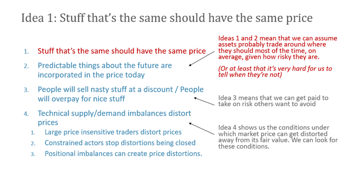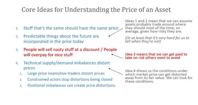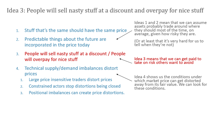 by the time we get to ideas 4 and 5, we can simplify to “assets probably trade around where they should be most of the time, given how risky they are”