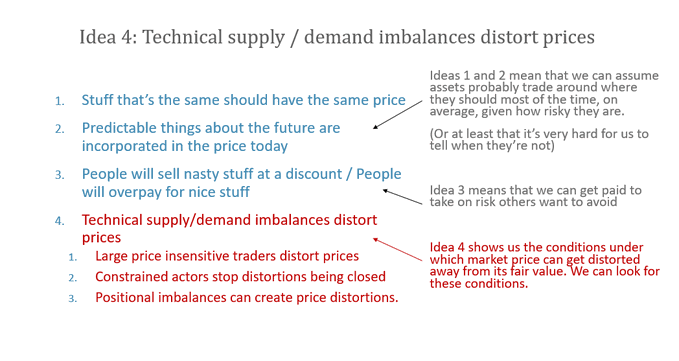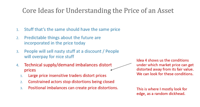 and if we're fishing for inefficiencies, as a random dickhead, we can focus on idea 4: technical supply/demand imbalances created by forced or constrained actors are likely to create pricing distortions.