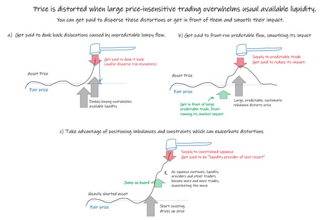 large, price-insensitive trading creates pricing distortions when it overwhelms the usual available liquidity.