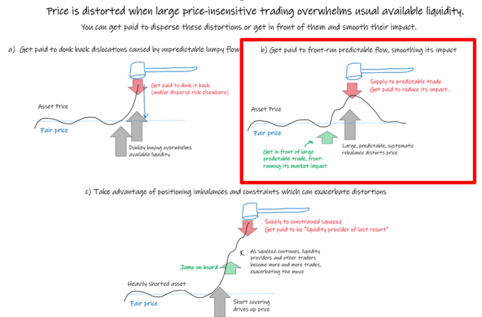 you can get paid to front-run it and smooth out its impact.