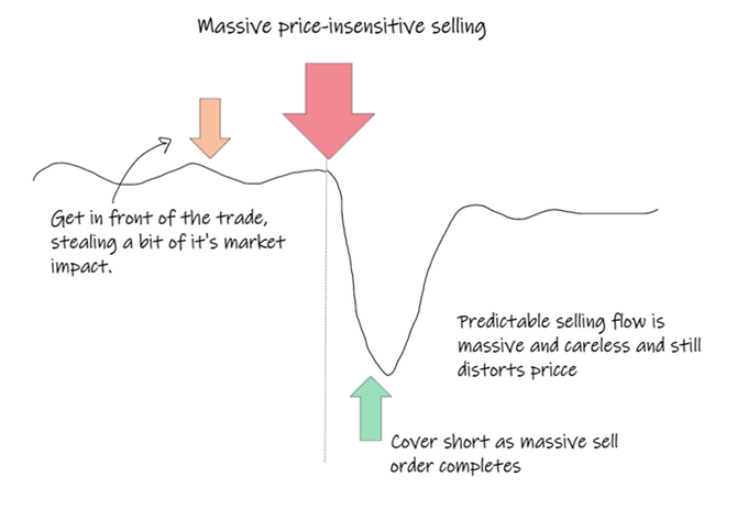 so we'd look to get in front of it, selling ahead of the trade. then cover our short as the selling completes.