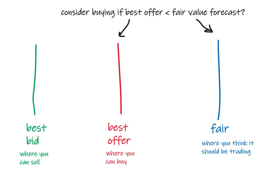 if there's an offer to sell it cheaper than your fair value forecast, you might consider buying it (lifting the offer)
