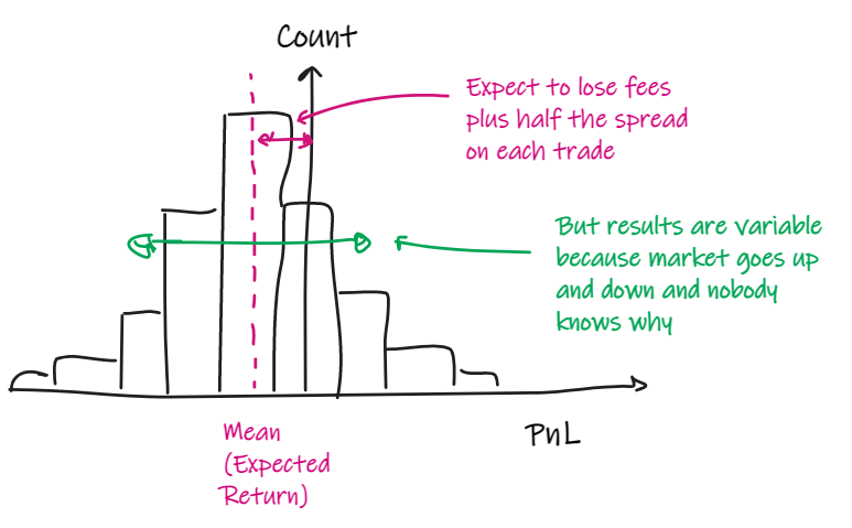 "i understand that market outcomes are mostly random, and that is represented in the spread of my histogram.