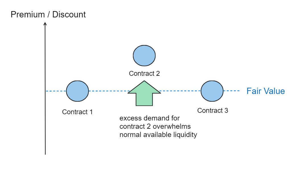 now, for whatever reason, the demand for immediate liquidity in contract 2 is bigger than the normal liquidity that's available.