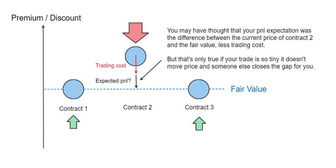 you may have thought that your pnl expectation in this trade is the difference between the current price contract 2 and its fair value, less your trading costs.