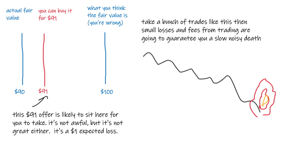 it turns out it's not hard to find people who are prepared to trade at the wrong prices.