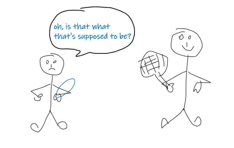 cos he's very good at playing tennis and you're bad at it.